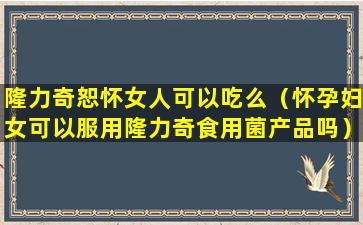 “隆力奇恕怀”这个名字看起来像是一个产品的名称,但是没有足够的信息来确定它是什么类型的产品。如果它是一种药物或者保健品,那么是否适合女性食用取决于产品的成分、用途以及是否有性别使用的限制。