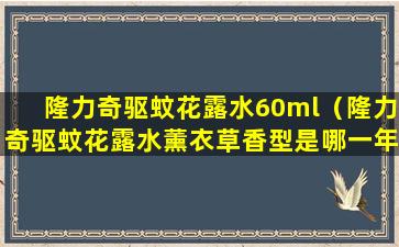 很抱歉,我无法提供关于“隆力奇驱蚊花露水60ml”的具体信息,因为这可能是一个特定地区的产品,或者是一个较新的产品,而我无法访问最新的产品数据库。不过,我可以提供一些关于驱蚊花露水的一般信息。