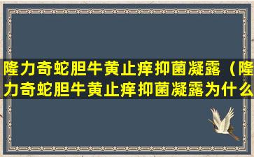 隆力奇蛇胆牛黄止痒抑菌凝露是一种外用药物,通常用于缓解皮肤瘙痒和抑制细菌生长。这种产品可能含有蛇胆、牛黄等成分,这些成分在传统中医中被认为具有清热解毒、消炎止痒的功效。
