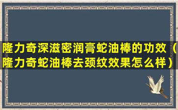 关于隆力奇蛇油棒去颈纹的效果,这取决于多种因素,包括颈纹的严重程度、个人的皮肤类型、使用方法以及是否结合其他护肤措施。以下是一些可能的效果和注意事项: