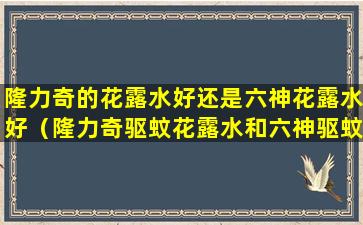 隆力奇和六神都是中国市场上知名的花露水品牌,它们各自都有驱蚊花露水产品。选择哪个品牌的驱蚊花露水更好,主要取决于个人的偏好、使用体验以及对产品成分的考量。以下是一些比较的方面: