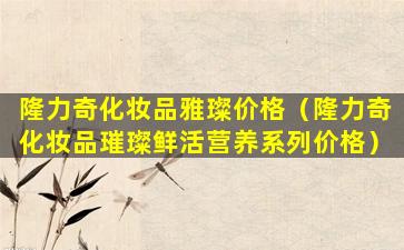 关于隆力奇化妆品璀璨鲜活营养系列的价格,由于产品价格可能会因地区、销售渠道、促销活动等因素而有所不同,因此无法提供一个确切的价格。通常,这类产品的价格范围可能在几十元到几百元人民币不等,具体取决于产品的规格和类型。