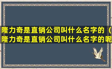隆力奇是一家中国的直销公司,其全称为“江苏隆力奇生物科技股份有限公司”。该公司成立于1986年,总部位于江苏省常熟市,主要从事日化产品的研发、生产和销售。隆力奇的产品线涵盖了个人护理、家居清洁、健康食品等多个领域。
