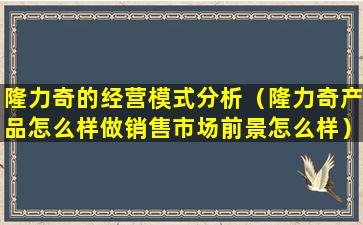 4. 直销模式:隆力奇采用直销模式,这种模式可以减少中间环节,提高销售效率,但同时也需要面对直销模式带来的监管和市场接受度问题。