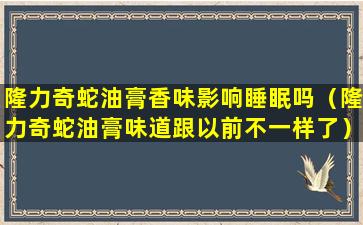 关于香味是否会影响睡眠,这主要取决于个人的敏感度和对香味的接受程度。一般来说,隆力奇蛇油膏的香味并不浓烈,大多数人使用后不会感到不适或影响睡眠。如果个人对香味特别敏感,或者在使用后感到不适,可能会影响睡眠质量。