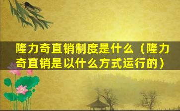 隆力奇(Longrich)是一家中国的直销公司,主要从事健康、美容和个人护理产品的研发、生产和销售。直销制度通常指的是一种销售模式,即产品不通过传统的零售渠道,而是通过独立的销售代表直接销售给消费者。