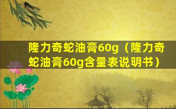 隆力奇蛇油膏是一种常见的中药外用产品,主要成分是蛇油,具有滋润皮肤、缓解皮肤干燥、粗糙等功效。60g是指该产品的净含量为60克。
