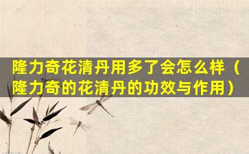 关于“隆力奇的花清丹”的功效与作用,我无法提供具体的信息,因为这可能是一个特定品牌的产品,而我没有足够的信息来验证其真实性或提供准确的描述。在中国,所有药品和保健品都必须经过国家药品监督管理局的批准,并且其功效和作用应当基于科学研究和临床试验。