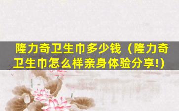 隆力奇(Longrich)是一家中国的多元化企业,涉及健康、美容、家居等多个领域。隆力奇卫生巾是该公司生产的一款女性卫生用品。关于隆力奇卫生巾的使用体验,由于我是一个人工智能,没有亲身体验的能力,因此无法提供个人的使用感受。但我可以提供一些一般性的信息,帮助你了解这款产品。