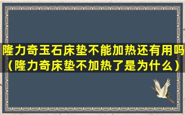 如果您的隆力奇玉石床垫不能加热,那么它可能就失去了一些主要的功能,比如通过加热来促进血液循环和放松肌肉。不过,即使不能加热,玉石床垫仍然可能具有以下一些作用: