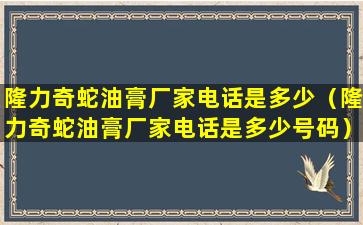 很抱歉,我无法提供具体的电话号码信息。如果您需要联系隆力奇蛇油膏的厂家,建议您可以通过以下几种方式尝试获取联系方式: