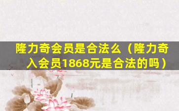 在中国,任何形式的商业活动都应当遵守国家的法律法规。关于“隆力奇入会员1868元”是否合法,需要根据以下几个方面来判断: