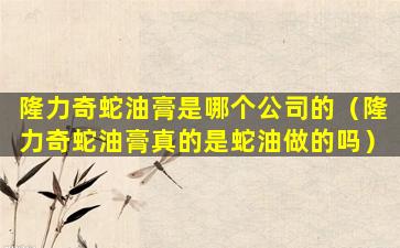 隆力奇蛇油膏是一种在中国市场上比较知名的护肤产品,它的主要成分之一是蛇油。蛇油通常是从蛇的皮肤中提取的油脂,含有多种脂肪酸和营养成分,被认为具有一定的保湿和修复皮肤的作用。