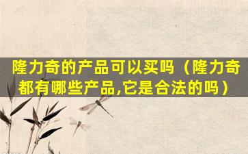 隆力奇在中国是一家合法注册的公司,拥有合法的生产和销售资质。关于其产品的质量和效果,市场上存在不同的声音和评价。在购买和使用隆力奇产品时,建议消费者仔细查看产品说明,了解产品成分,并根据自己的实际需求和健康状况做出选择。