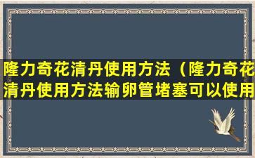 隆力奇花清丹是一种中药制剂,主要用于清热解毒、消炎止痛。关于输卵管堵塞的治疗,通常需要根据具体情况由医生进行诊断和制定治疗方案。输卵管堵塞的治疗可能包括药物治疗、手术治疗或者辅助生殖技术等。