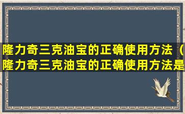 如果你需要了解“隆力奇三克油宝”的具体使用方法,建议直接联系产品生产商或销售商获取官方的使用指南或视频教程。同时,你也可以在视频分享平台或社交媒体上搜索是否有其他用户分享的使用经验。在搜索时,请确保来源的可靠性,避免受到不准确或误导性信息的影响。