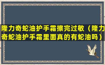 如果您在使用隆力奇蛇油护手霜后出现过敏反应,这可能是由于您对该产品中的某些成分敏感。过敏反应可能包括皮肤发红、瘙痒、肿胀、起疹子等症状。以下是一些建议的步骤: