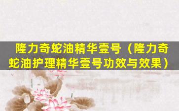 隆力奇是中国的一个知名品牌,以生产蛇油产品而闻名。蛇油被认为具有滋润和修复皮肤的功效,因此常被用于护肤品中。"隆力奇蛇油精华壹号"可能是该品牌推出的一款含有蛇油成分的护肤精华产品。