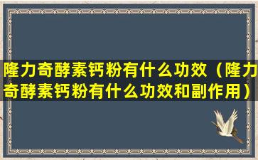 隆力奇酵素钙粉是一种营养补充品,它结合了酵素和钙质,旨在帮助人体更好地吸收和利用钙质,从而支持骨骼健康。以下是酵素钙粉可能的一些功效: