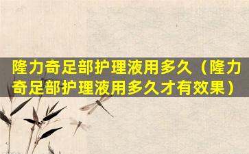 隆力奇足部护理液的使用频率和持续时间可能会因个人需求和产品说明而有所不同。通常,足部护理液是用来帮助缓解脚部疲劳、干燥、异味等问题,使用时应遵循产品包装上的说明或医生的建议。
