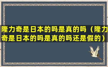 如果您在网络上看到有关隆力奇是日本公司的说法,这很可能是错误的信息或者是误解。在处理此类信息时,建议您查找官方或可靠的新闻来源来确认事实。