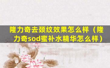 隆力奇(Longrich)是中国的一个品牌,它生产多种健康和美容产品,包括护肤品。关于隆力奇去颈纹产品的效果,这通常取决于个人的肤质、颈纹的严重程度以及使用产品的方法和频率。