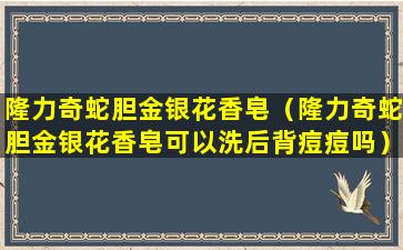 隆力奇蛇胆金银花香皂是一种含有蛇胆和金银花成分的香皂,这些成分通常被认为具有一定的抗菌和消炎作用。金银花在中国传统医学中常用于清热解毒,而蛇胆则被认为有清热解毒、消炎止痛的功效。