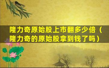 如果隆力奇是一家即将上市或已经上市的公司,其原始股上市后的表现需要根据实际的市场交易数据来确定。投资者通常会关注公司的基本面分析、财务报告、市场预期等因素来评估股票的潜在价值。