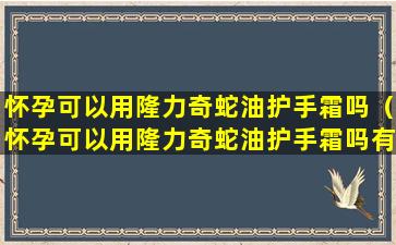 怀孕期间,孕妇的皮肤可能会变得更加敏感和干燥,因此使用护手霜来保持手部皮肤的滋润是可以的。隆力奇蛇油护手霜是一种常见的护肤产品,主要成分是蛇油,它具有一定的滋润和修复皮肤的作用。