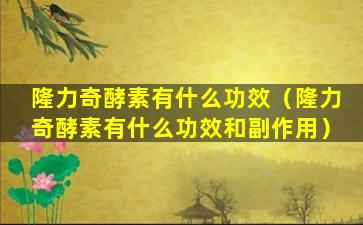 隆力奇酵素是一种含有多种植物酵素的保健品,它通常被宣传为能够帮助消化、促进新陈代谢、增强免疫力等。酵素是生物体内的一种蛋白质,能够催化生物化学反应,对于维持生命活动至关重要。