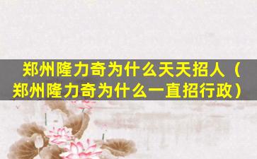 关于“郑州隆力奇为什么天天招人”的问题,这可能涉及到几个方面的原因: