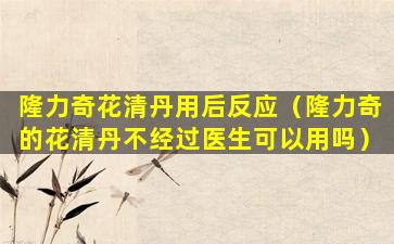 关于“隆力奇花清丹”的使用后反应,首先需要明确的是,任何药物或保健品的使用都应在医生或专业人士的指导下进行。如果您在使用“隆力奇花清丹”后出现了任何不适或异常反应,应立即停止使用,并咨询医生或药师。