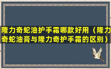 隆力奇蛇油膏和隆力奇护手霜都是隆力奇品牌下的护肤产品,它们的主要成分和用途有所不同。
