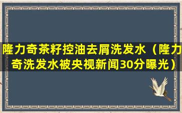 截至我的知识更新日期为止(2023年),我没有找到关于“隆力奇洗发水被央视新闻30分曝光”的具体信息。央视新闻30分是中国中央电视台的一档新闻节目,通常会报道国内外的重要新闻事件。如果有关隆力奇洗发水的报道,可能是关于产品质量、安全问题或其他相关新闻。