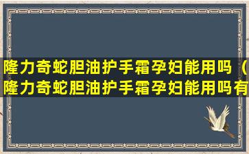 隆力奇蛇胆油护手霜是一种护肤品,通常含有多种成分,包括蛇胆油等。对于孕妇来说,使用任何护肤品都应该谨慎,因为某些成分可能对胎儿有潜在的风险。