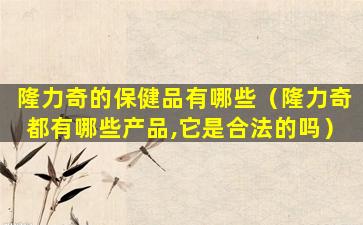 具体的产品名称和详细信息可能会随时间而变化,建议直接访问隆力奇的官方网站或联系其客服获取最新的产品目录和详细信息。在购买和使用任何保健品之前,建议咨询医疗专业人士,以确保产品适合您的健康状况。