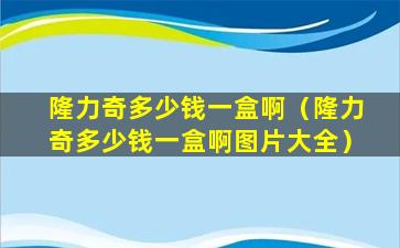 隆力奇(Longrich)是一个中国的健康产品品牌,它生产多种产品,包括个人护理、健康食品、家居用品等。由于隆力奇的产品线非常广泛,不同产品的价格也会有所不同。价格还可能受到购买地点、促销活动、批发或零售等因素的影响。