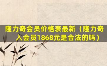 在中国,任何商业活动都必须遵守国家的法律法规。关于“隆力奇入会员1868元”是否合法,需要根据以下几个方面来判断: