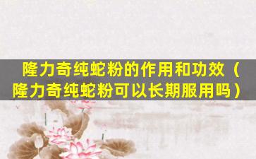 隆力奇纯蛇粉是一种以蛇类为原料制成的保健品,通常宣称具有增强免疫力、改善皮肤状况等功效。关于是否可以长期服用,需要考虑以下几个方面: