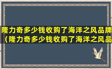 截至我所知的信息截止日期(2023年),关于隆力奇(Longrich)收购海洋之风品牌店的具体金额并没有公开的详细报道。隆力奇是一家中国的多元化企业,涉及健康、美容、家居等多个领域,而海洋之风可能是指某个特定的品牌或店铺。