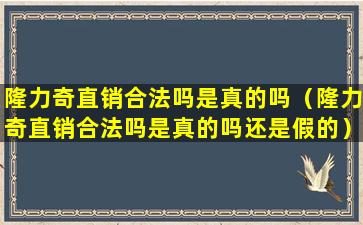隆力奇是一家中国的直销公司,其业务模式是基于多层次营销(MLM)的直销。在中国,直销业务是受到国家工商行政管理总局的监管的,只有获得直销许可证的公司才能合法开展直销业务。