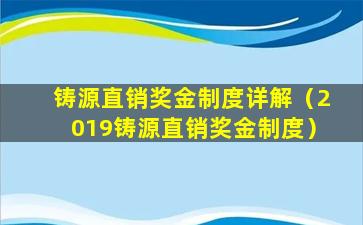 如果您需要了解“2019铸源直销奖金制度”的具体内容,建议直接联系铸源公司或访问其官方网站获取最准确的信息。同时,参与直销活动前,请确保了解相关的法律法规,以及公司的信誉和产品信息,以保护自己的权益。