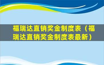 关于“福瑞达直销奖金制度表最新”的信息,我无法提供具体的奖金制度表,因为这通常是公司内部的敏感信息,且可能会随着时间和政策的变化而更新。如果您想了解福瑞达的直销奖金制度,建议直接咨询福瑞达公司或其官方渠道获取最准确和最新的信息。