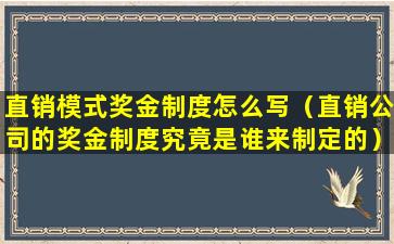 直销模式的奖金制度通常是根据公司的业务模式和市场策略来设计的,旨在激励直销人员积极推广产品或服务,并根据其业绩获得相应的奖励。以下是一个简单的直销模式奖金制度示例: