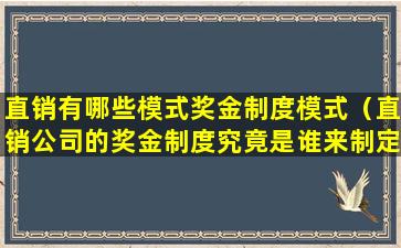 直销(Direct Selling)是一种销售模式,产品或服务直接从生产者或服务提供者销售给消费者,通常不通过传统的零售渠道。直销模式中,奖金制度是激励直销人员的重要手段,不同的直销公司可能会有不同的奖金制度模式。以下是一些常见的直销奖金制度模式: