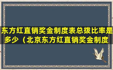 关于“东方红直销奖金制度表总拨比率”的具体信息,由于我无法访问最新的数据和具体的奖金制度细节,因此无法提供确切的数字。直销公司的奖金制度通常会根据公司的政策、产品类型、销售业绩等因素有所不同。
