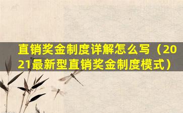 直销奖金制度是直销公司为了激励销售人员而设计的一套奖励机制。撰写直销奖金制度详解时,需要详细说明奖金的计算方式、发放条件、奖励级别等内容。以下是一个直销奖金制度详解的基本框架: