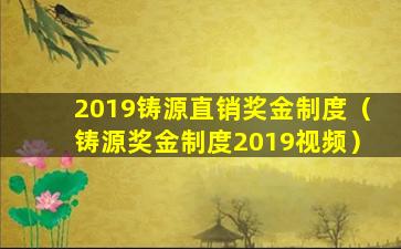 关于“铸源奖金制度2019视频”,目前没有官方的详细信息或者视频资源可以提供。如果您是在寻找关于某个特定公司或组织的奖金制度视频,建议您直接访问该公司的官方网站或者联系他们的客服部门以获取最准确和官方的信息。