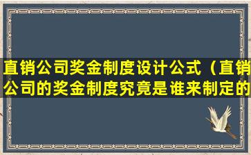 直销公司的奖金制度通常是由公司内部的管理层或者专门的薪酬福利部门根据公司的经营策略、市场状况、法律法规以及行业标准来制定的。在制定过程中,公司可能会考虑以下几个方面:
