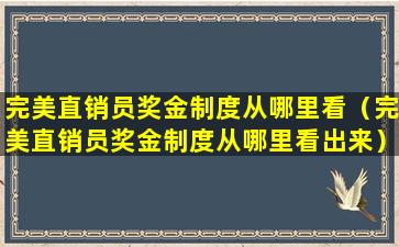 如果你想了解完美直销员的奖金制度,可以尝试以下几种方法: